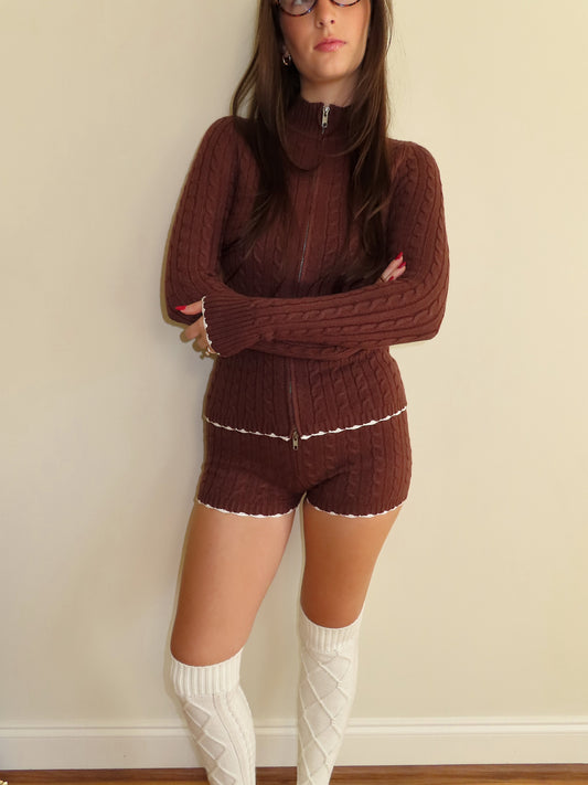 Coffee Break Cable Knit Mini Shorts
